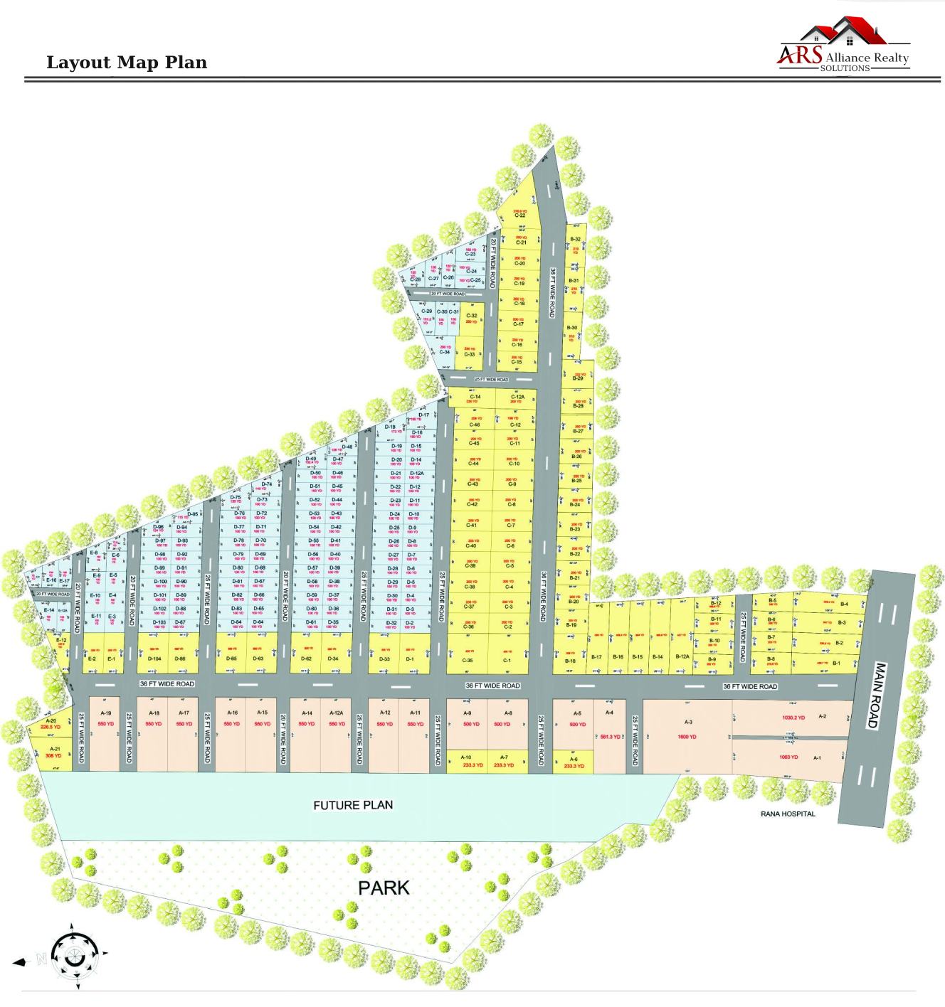 Discover the thoughtfully designed master plan of the ARS Residential Plots project located on the Yamuna Expressway, Jewar. This comprehensive layout ensures a balanced mix of residential, commercial, and green zones, all seamlessly integrated for optimal convenience and comfort.